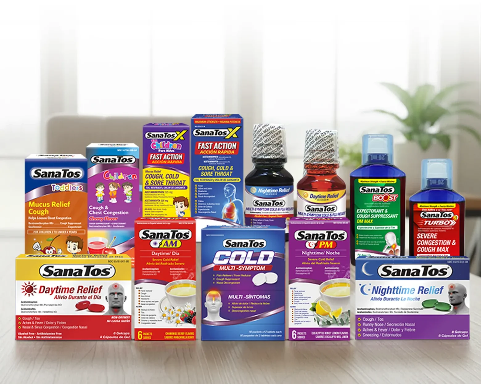 SanaTos ofrece una línea completa de medicamentos para la tos, gripe y resfriado sin receta, elaborados con ingredientes confiables y pensados para brindar alivio rápido y seguro, en todas las etapas de la vida
